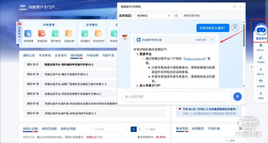 日前,鐵建云鏈平臺采購方智能助手正式上線運行,標志著鐵建云鏈平臺智能化應用場景從供應商服務端向采購方服務端實現全面擴圍,成功構建起連接采供兩端的全鏈路智能服務體...