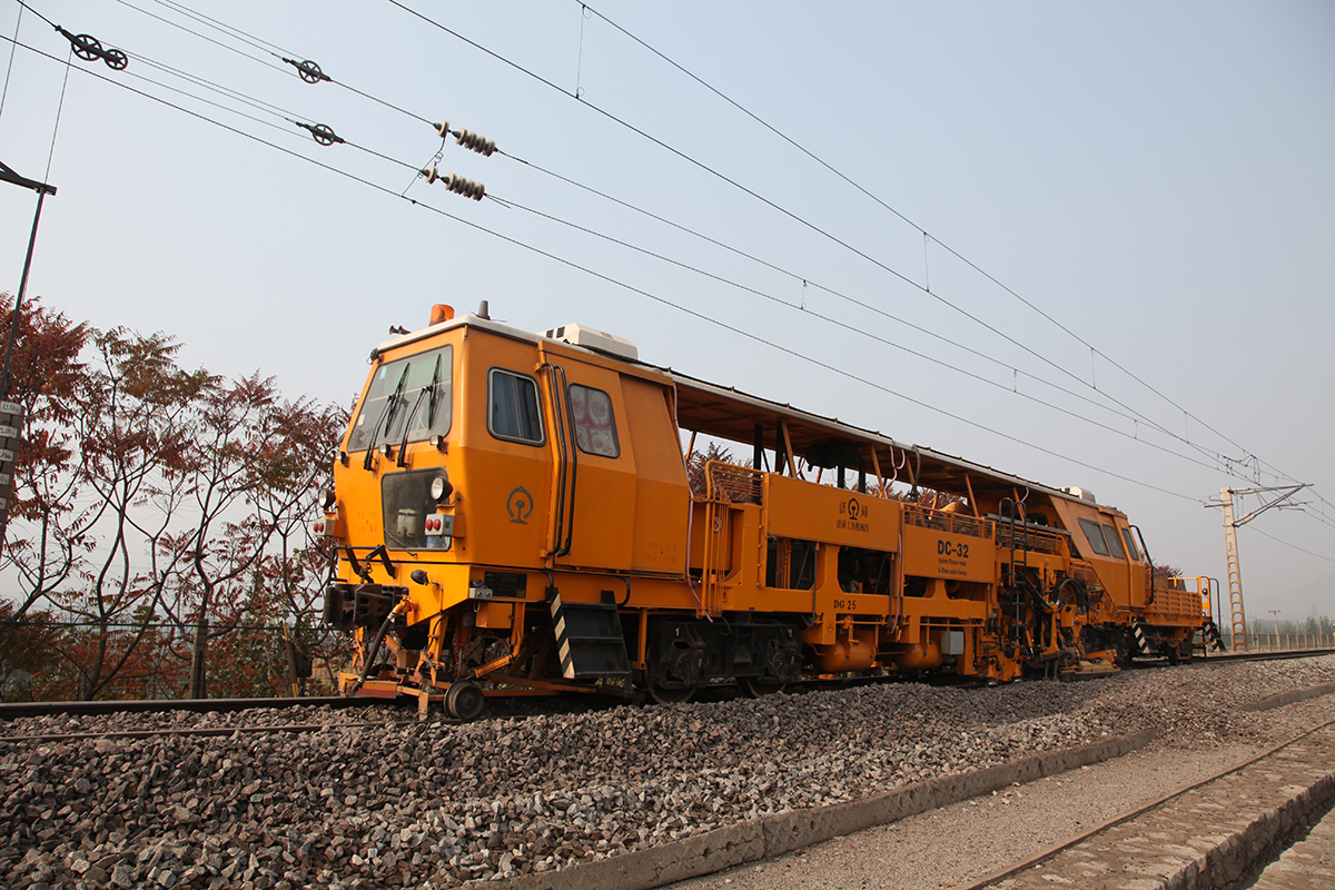 The DC-32 Tamping Machine is a two-sleeper tamping machine and implements the stepping action mode during operation. This machine can achieve various tasks, such as the track lifting, track lining and leveling for railways and turnouts and the compacting for ballasts under sleeper on both steel track sides or at sleeper ends. As for this machine, the geometric parameters of railway track after operation may be measured and recorded by the on-board measuring system, and the operation may be carried out according to the set geometric parameters of track through the control system. If the speed-up bogie is used, the towed speed can be 120 km/h.