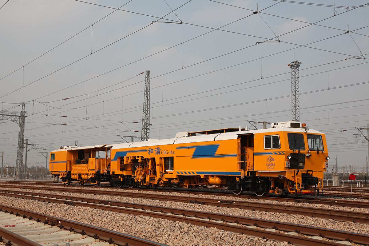 The CDC-16 Turnout Tamping Machine is dedicated to the maintenance and construction of railways and switches. During the course of turnout maintenance, this machine, provided with four tamping devices, follows the scientific working principle of “three-line track lifting and four-line tamping” and uses the sliding slewing device and the telescopic rotating device to achieve various tasks, such as the track lifting, track lining and leveling for railways and turnouts and the compacting for ballasts under sleepers on both steel track sides or at sleeper ends. As for this machine, the geometric parameters of railway track before and after operation may be measured and recorded by the on-board measuring system, and the operation may be carried out according to the set geometric parameters of track through the control system.